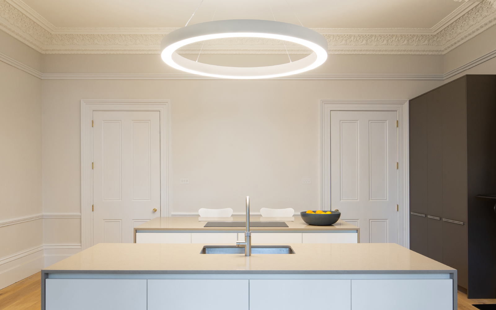 The scope of work included the sensitive integration of bespoke joinery, the restoration of original features, and the installation of a modern kitchen and new bathrooms; seamlessly blending heritage craftsmanship with contemporary design.