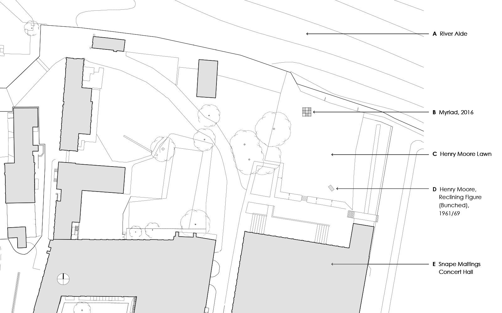 Myriad was commissioned by Aldeburgh Music and Suffolk Coastal District Council to join the outdoor sculpture collection at Snape Maltings alongside existing works by Henry Moore, Barbara Hepworth, Sarah Lucas and Alison Wilding. Designed by CORD in response to the brief for a sculpture that “offers a vantage point across the marshes at Snape and a new view over this flat and beautiful landscape”.