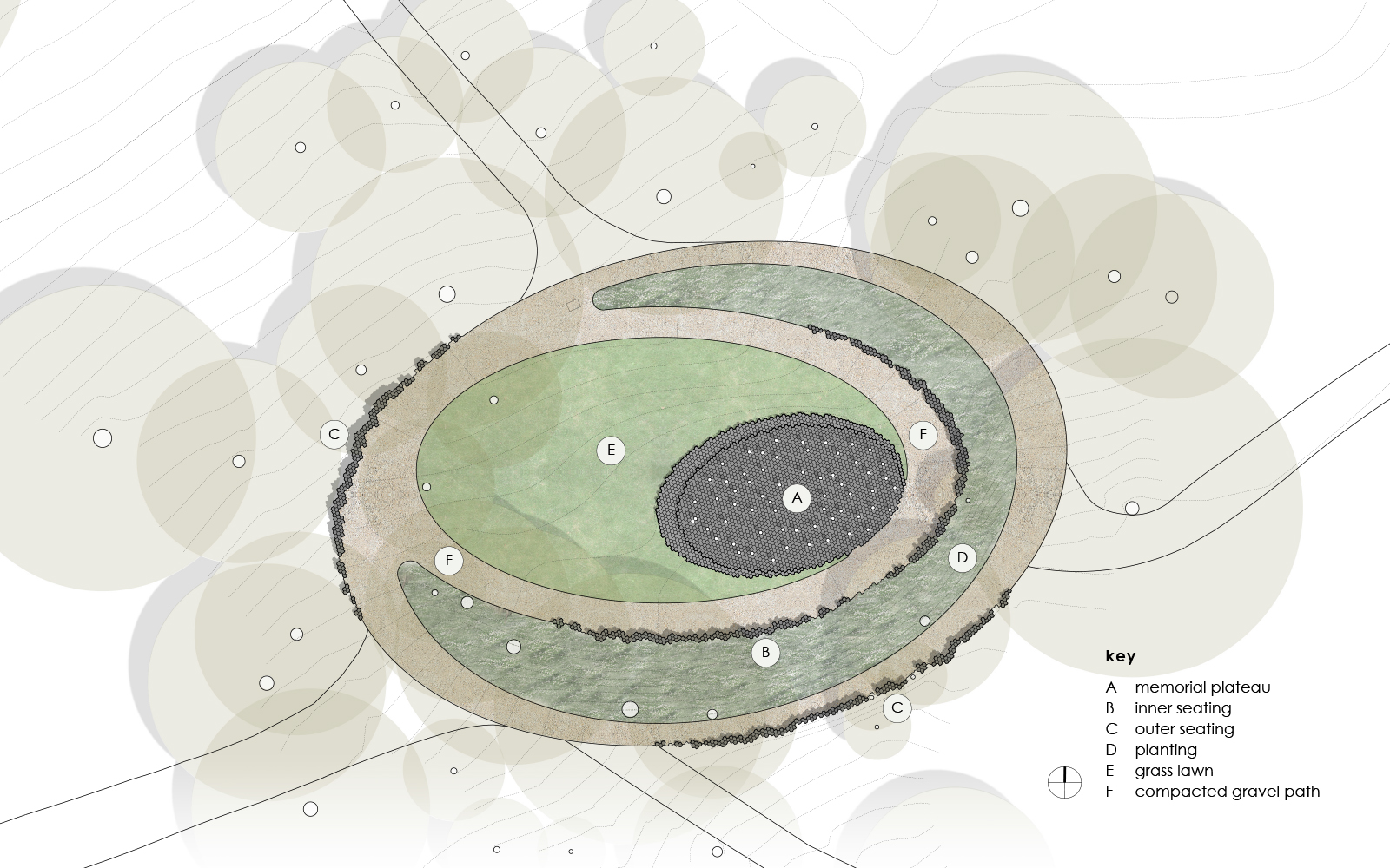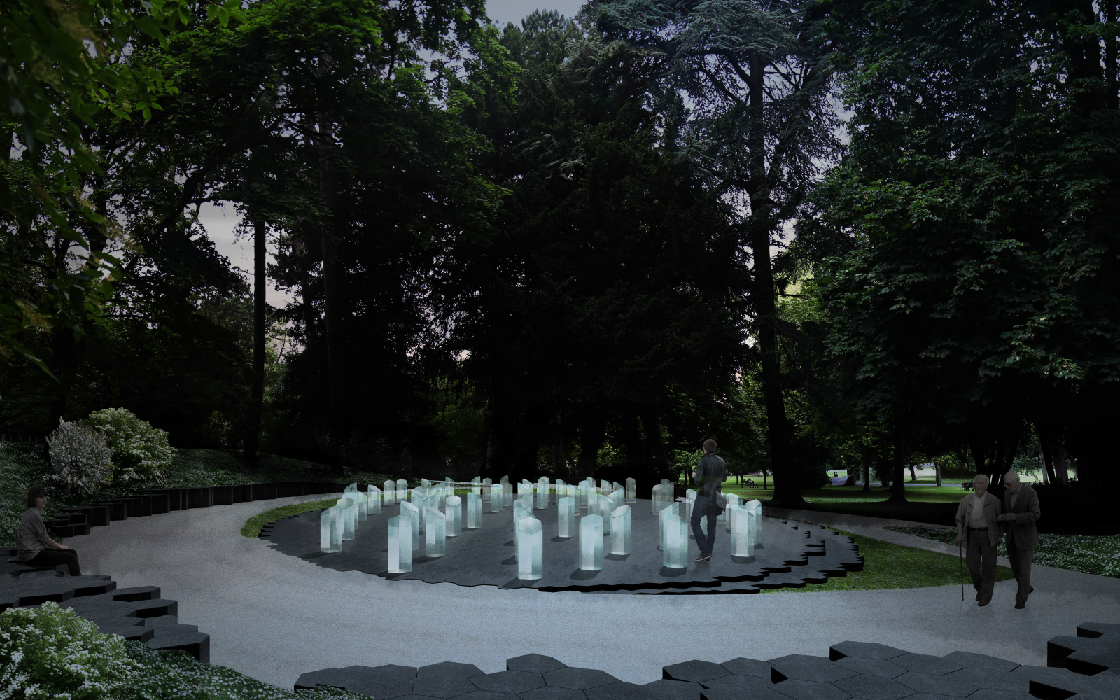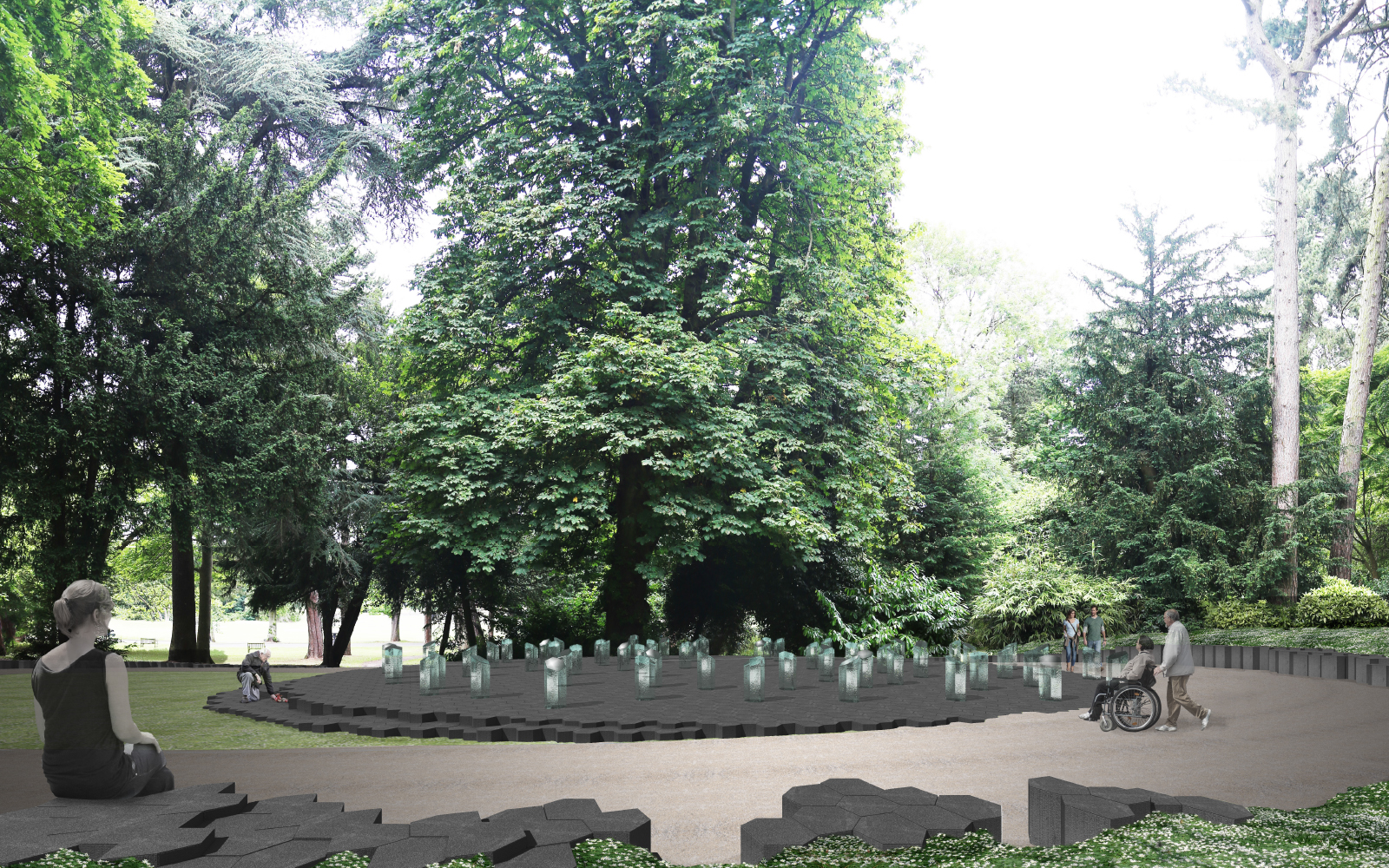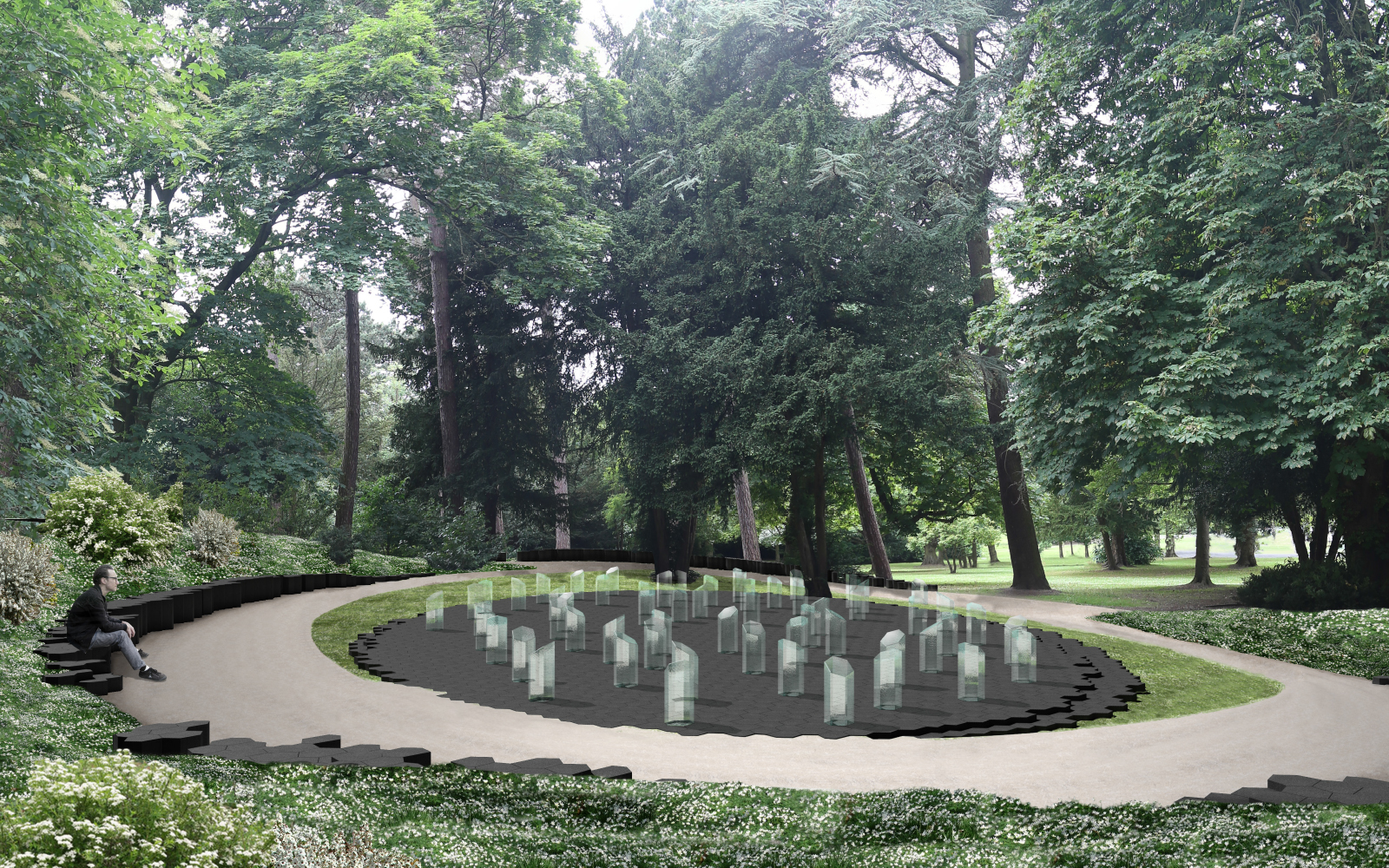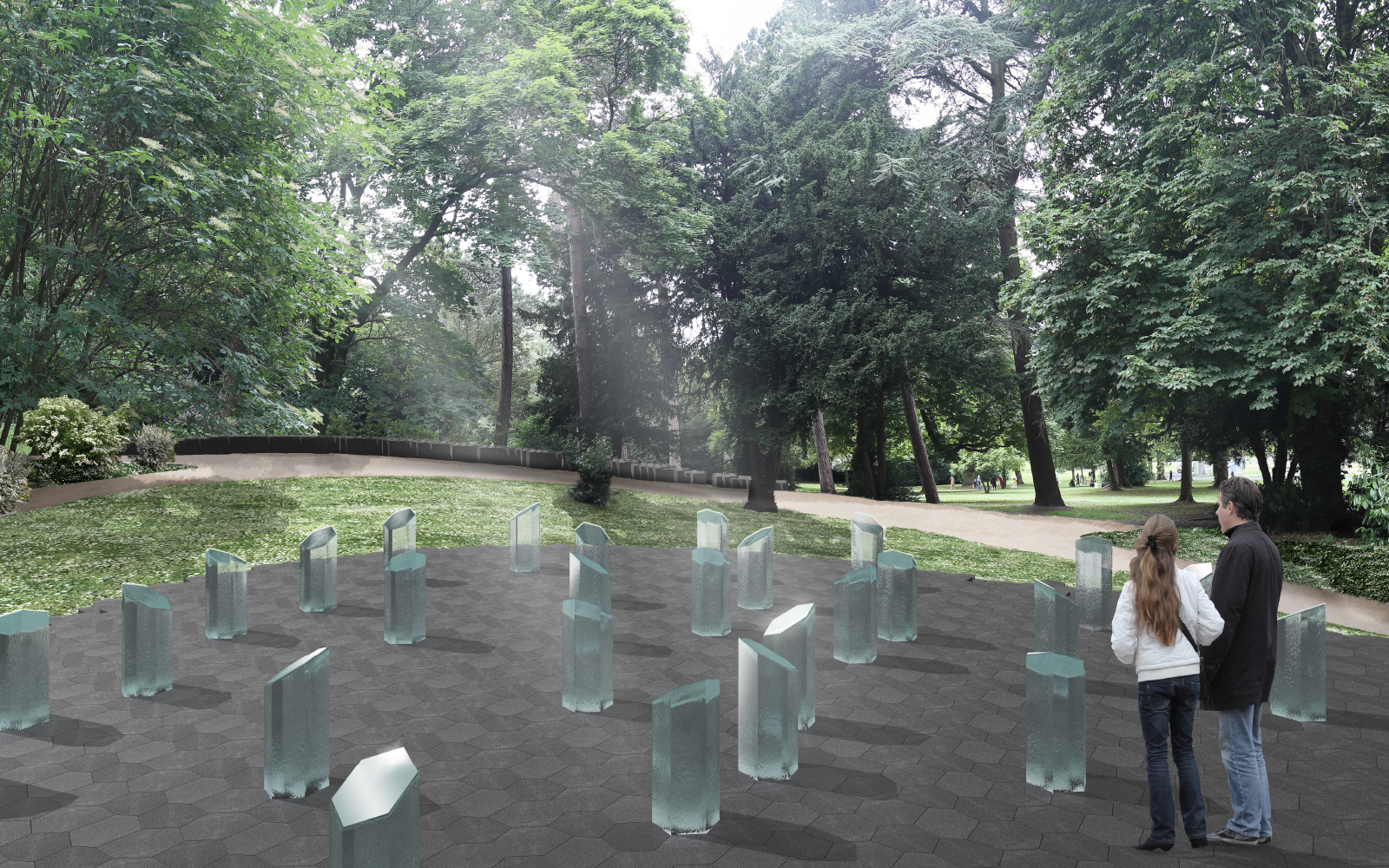 The Sousse Bardo Memorial forms an integrated landscape within the tranquil setting of Cannon Hill Park. The primary materials of the memorial are derived from sand, a substance of impermanence. However, within the memorial the flow of this transient substance will be fixed to form a place of reflection and remembrance.